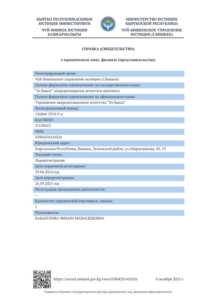 - Сариева Ирина Керимовна — заместитель директора АА «Эл баасы», организатор процесса аккредитации.